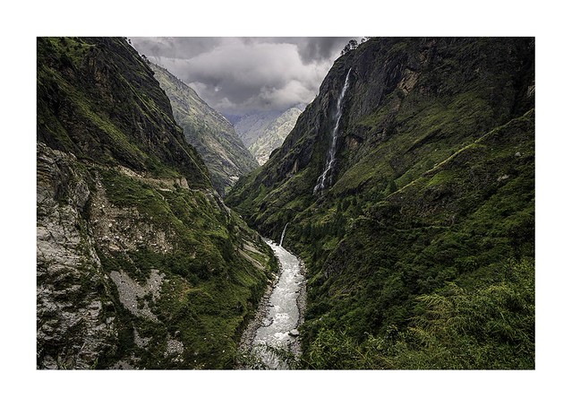 The first recognizably Tibetan village on the route. The architecture shifts here: white-washed stone walls, wooden window frames painted in deep reds and blues, rooftop mani stones. Rachen Gompa sits above the village on a rocky spur. The monastery is active and can be visited in the morning.